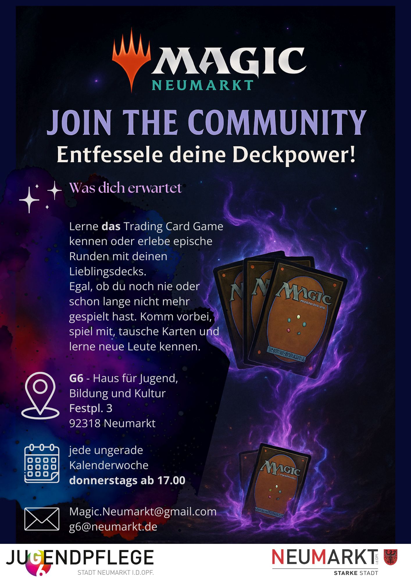 Wir sind für euch erreichbar: Im G6 unter 09181 255-2690 oder g6@neumarkt.de und im Jugendbüro unter 09181 255-2681 oder jugendbuero@neumarkt.de